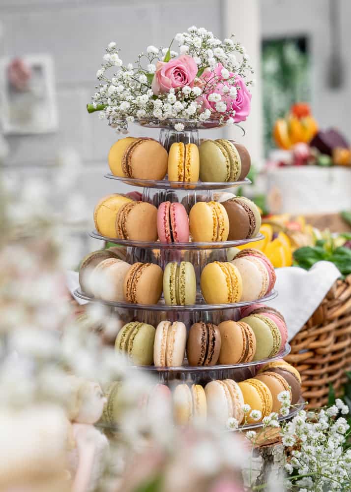 Whether you’re having a French themed wedding or not, these sweet, sophisticated macarons are a perfect alternative to a tiered wedding cake. Not only can you easily stack them in a tower using alternative colours and flavours from your colour scheme, but it means you can get portion control spot on too by catering for 1-2 macarons per guest. They make ideal sweet treats to hand round with the teas and coffees or even gift as wedding favours.